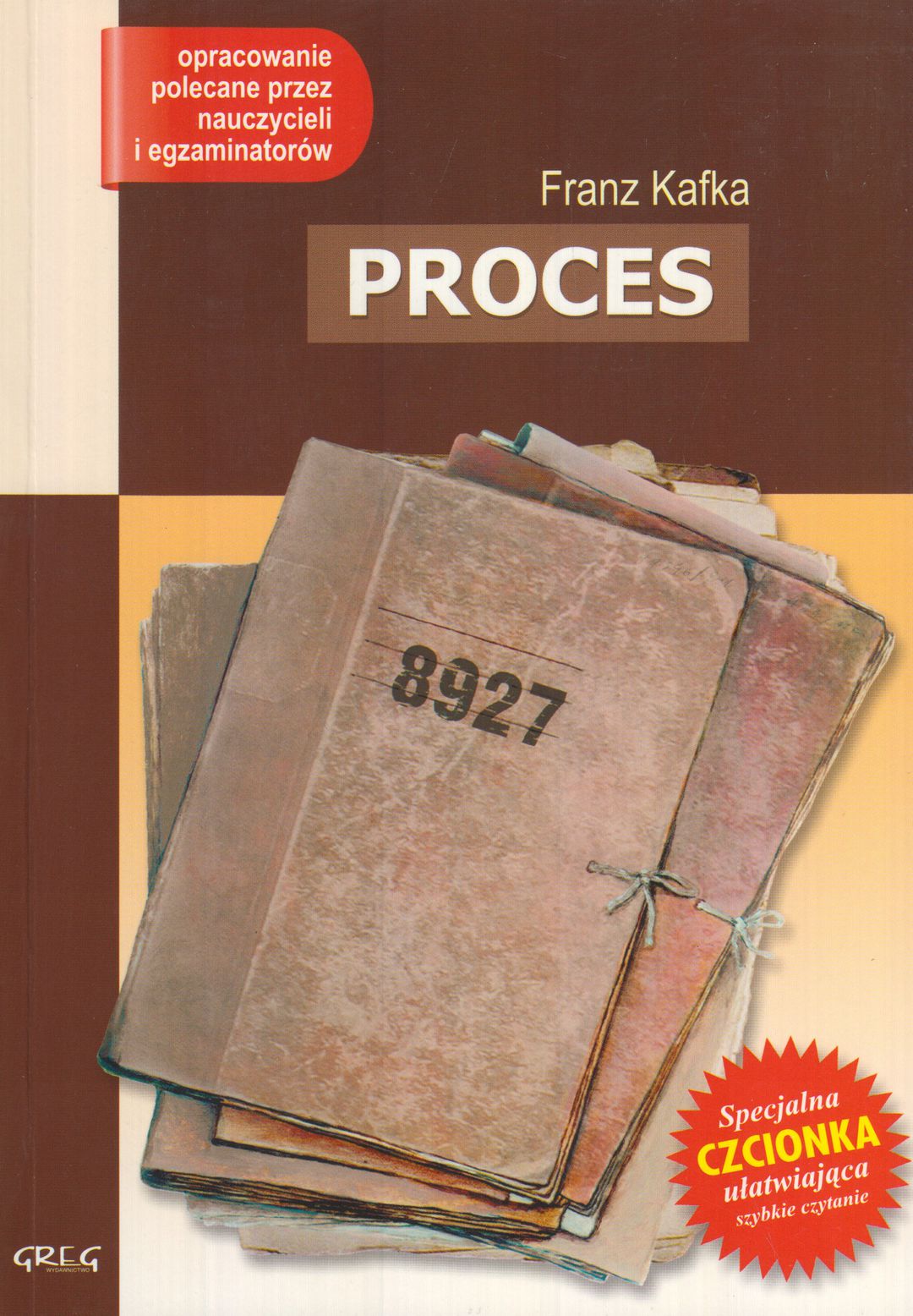 Proces / Franz Kafka ; oprac. Anna Popławska, Katarzyna Duda-Kaptur ; [przekład Bruno Schulz ; ilustracje Jacek Siudak]. - Wydanie II. rozszerzone i uzupełnione. - Kraków : Wydawnictwo Greg, 2016. - 165 stron : ilustacje ; 21 cm.