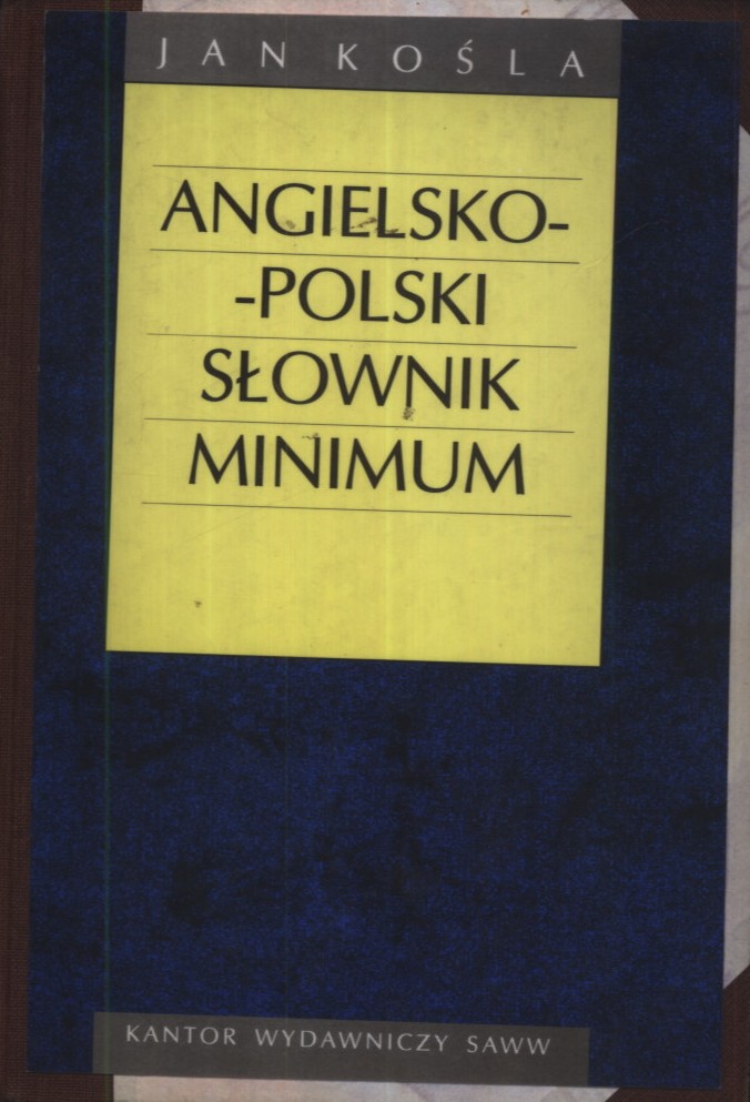 Angielsko-polski słownik minimum / Jan Kośla. - Poznań : Kantor Wydawniczy SAWW, 1993 (Pozn. : PDN). - 334 strony ; 17 cm.