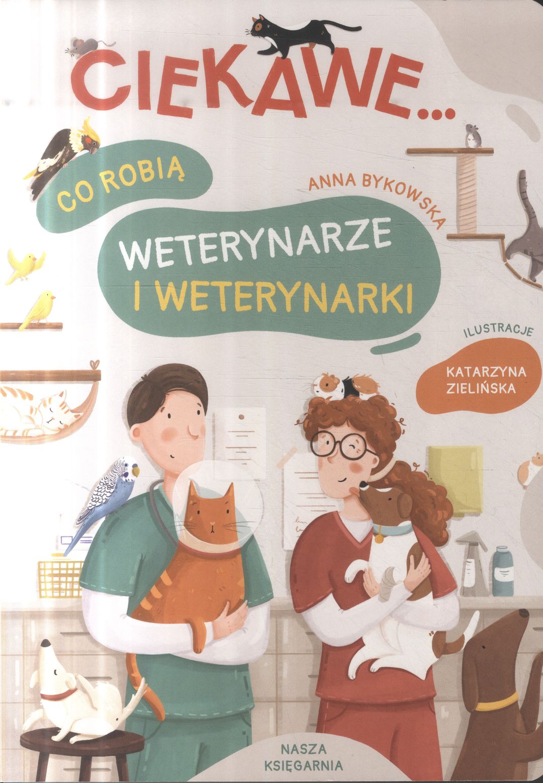 Co robią weterynarze i weterynarki / Anna Bykowska ; ilustracje Katarzyna Zielińska. - Wydanie pierwsze. - Warszawa-Wesoła : Nasza Księgarnia, copyright 2025. - [30] stron : ilustracje ; 28 cm.